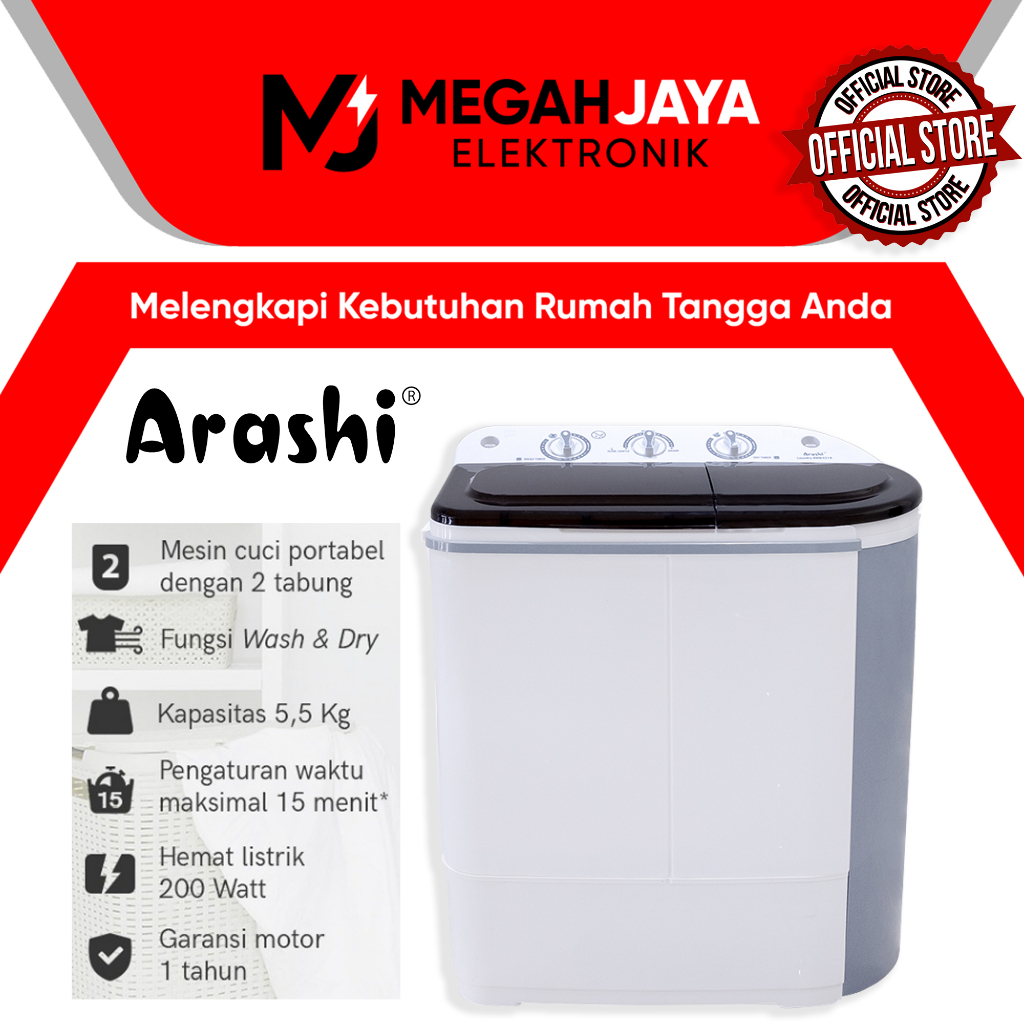 [ READY] ARASHI MESIN CUCI PORTABLE + PENGERING AWM 451A / 452A / 602B [5,5 / 4,5 KG] (GARANSI RESMI)