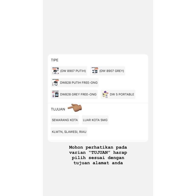 (DW 8907 PUTIH), (DW 8907 GREY), DW828 PUTIH FREE-ONG, DW828 GREY FREE-ONG, DW 5 PORTABLE, DW 976