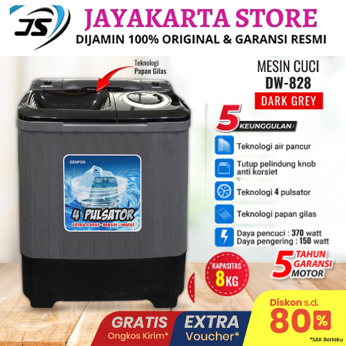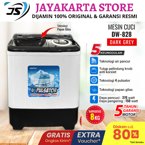 MESIN CUCI DENPO DW 828 4P & DW 8907 KAPASITAS 8KG 2 TABUNG DENGAN PAPAN PENGGILAS
