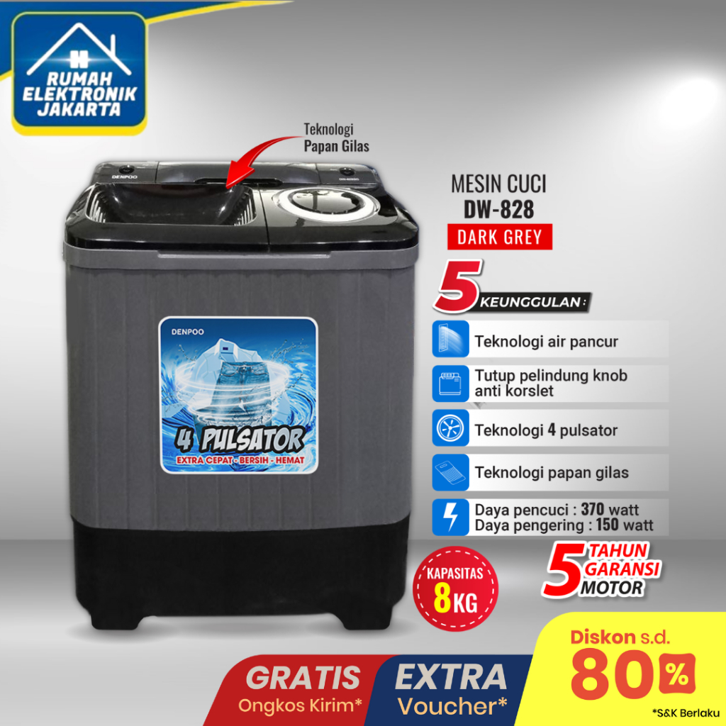 Denpoo Mesin Cuci 2 Tabung DW 8907B
