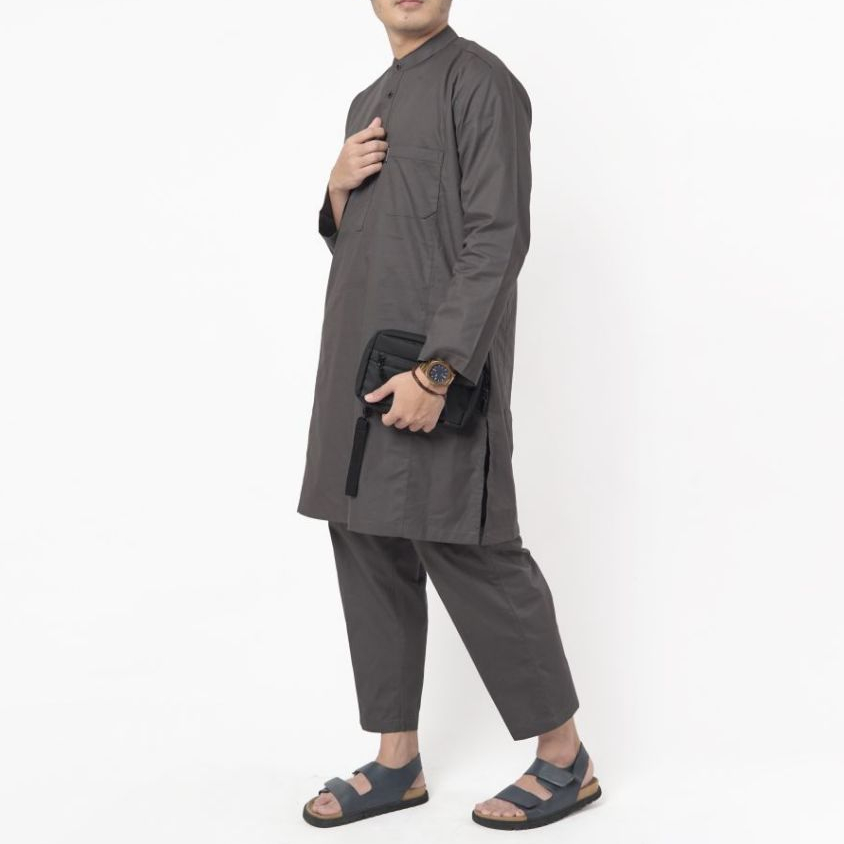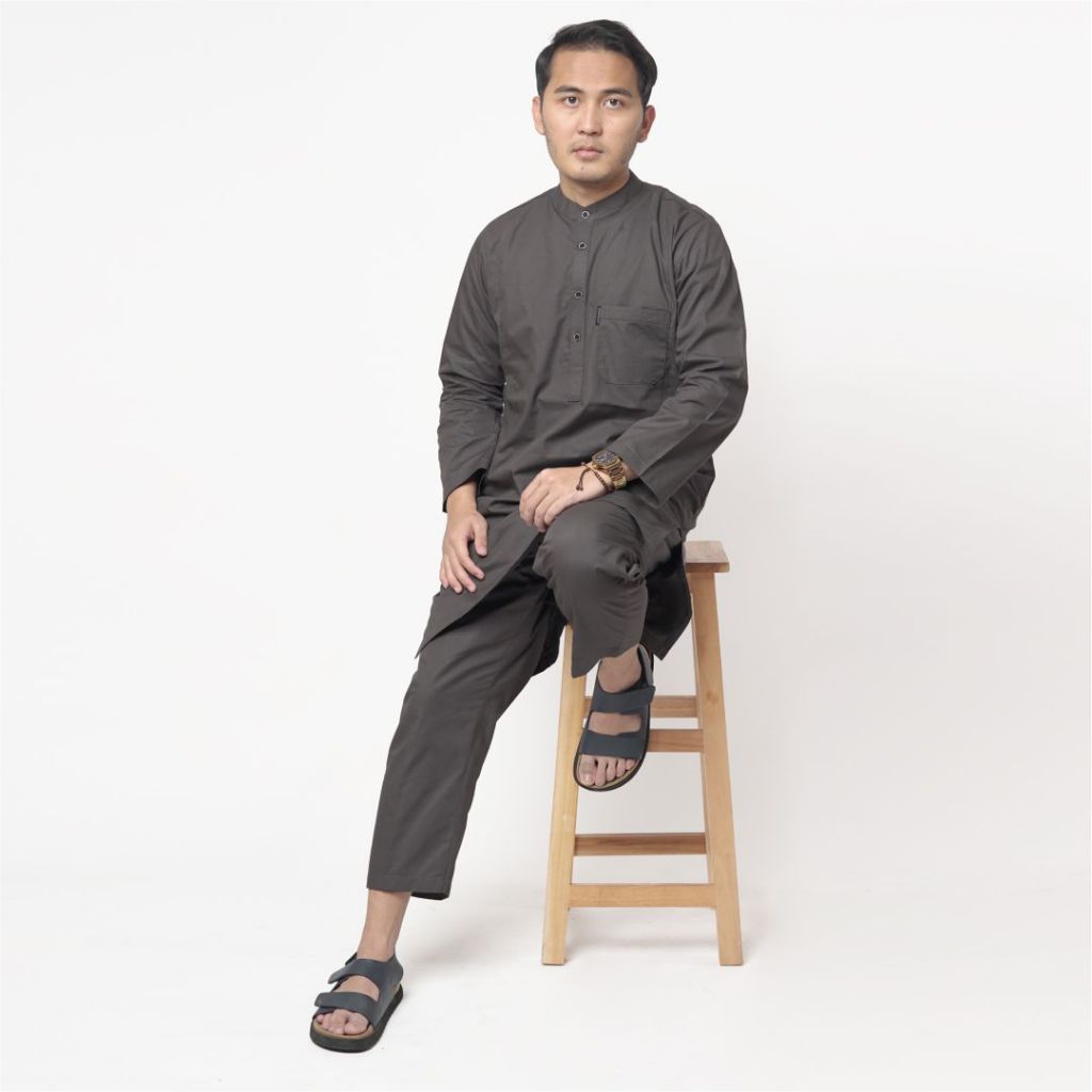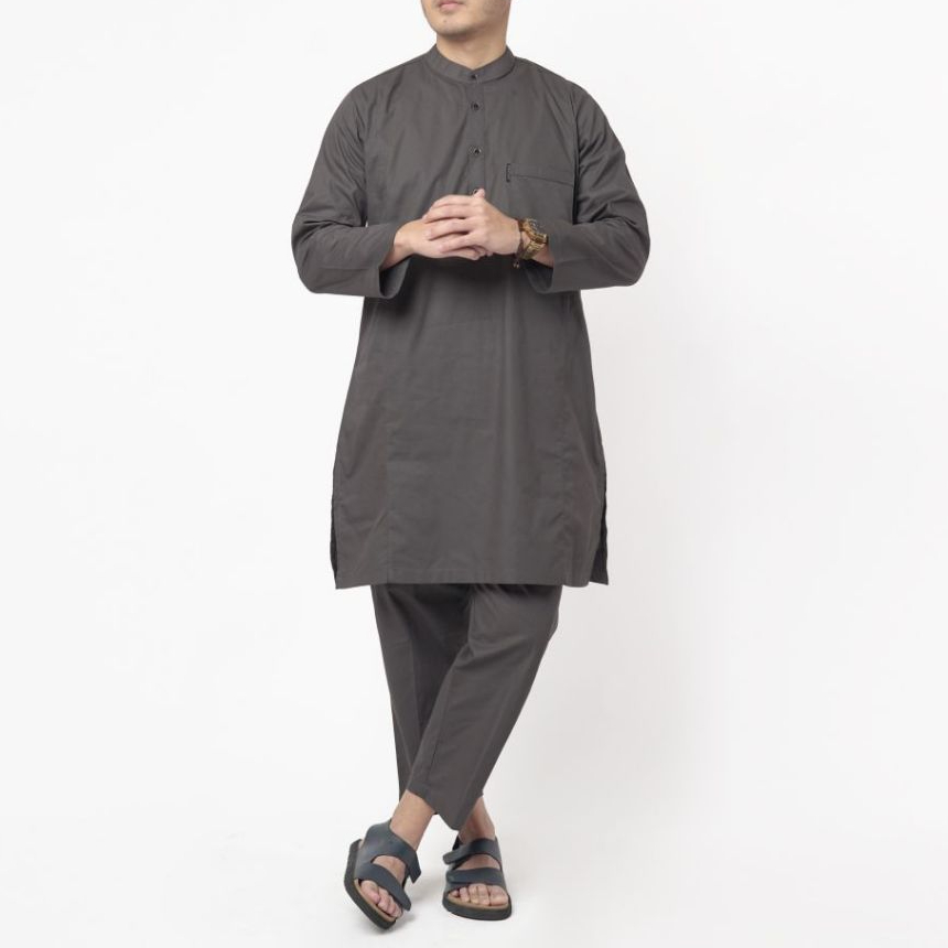 KHOIRUMMAH Koko Kurta Khaidar | Koko Kurta Stelan | Kurta Polos Dewasa Lengan Panjang | Dark Grey