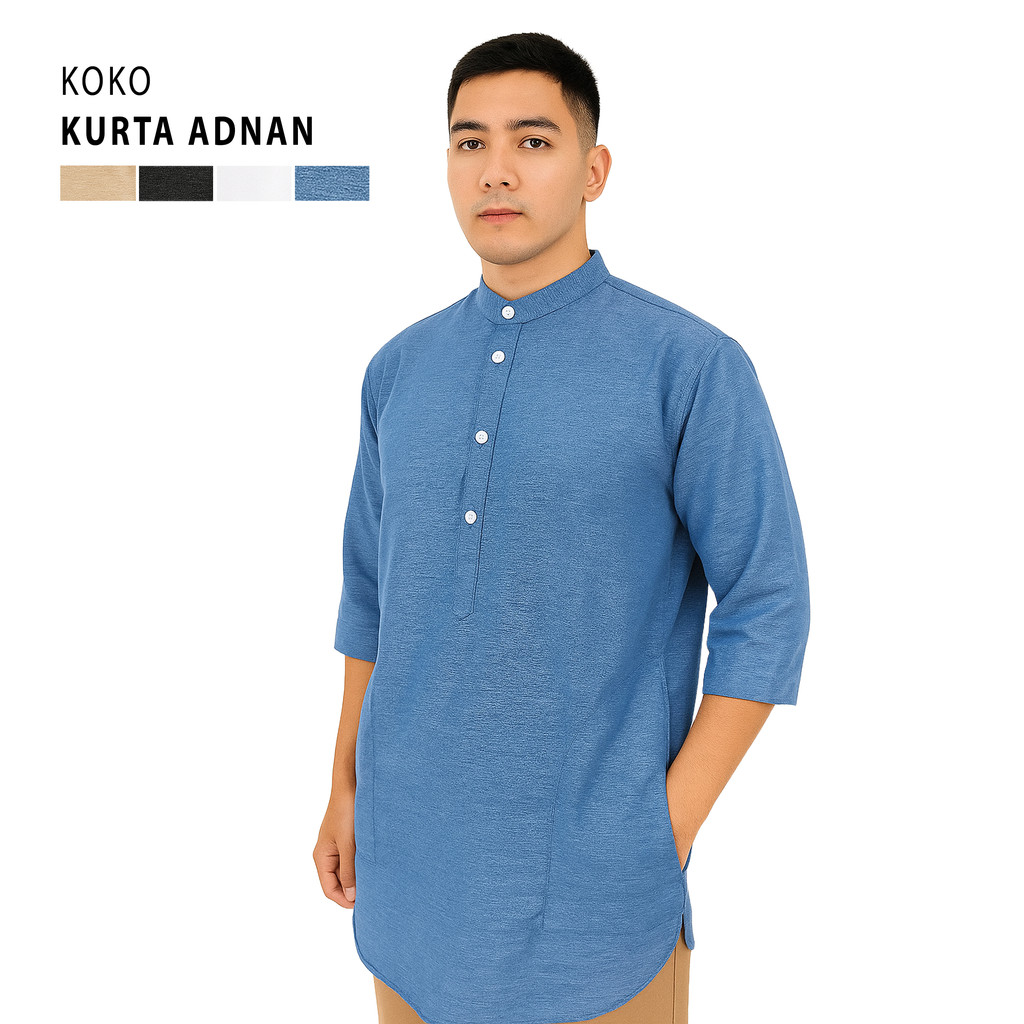 HIZZAGHI Kurta Pakistan ADNAN Baju Koko Premium Pria Muslim Dewasa Lengan 3/4 Nyaman