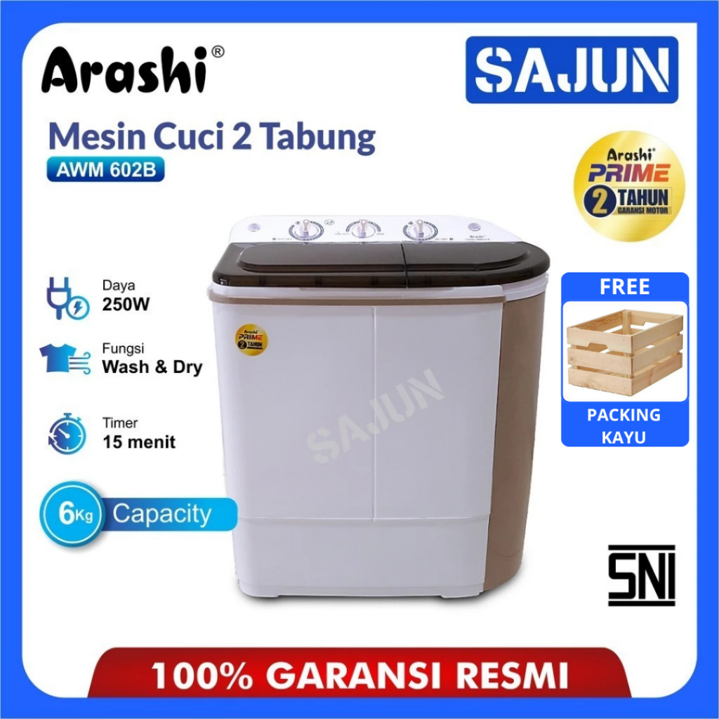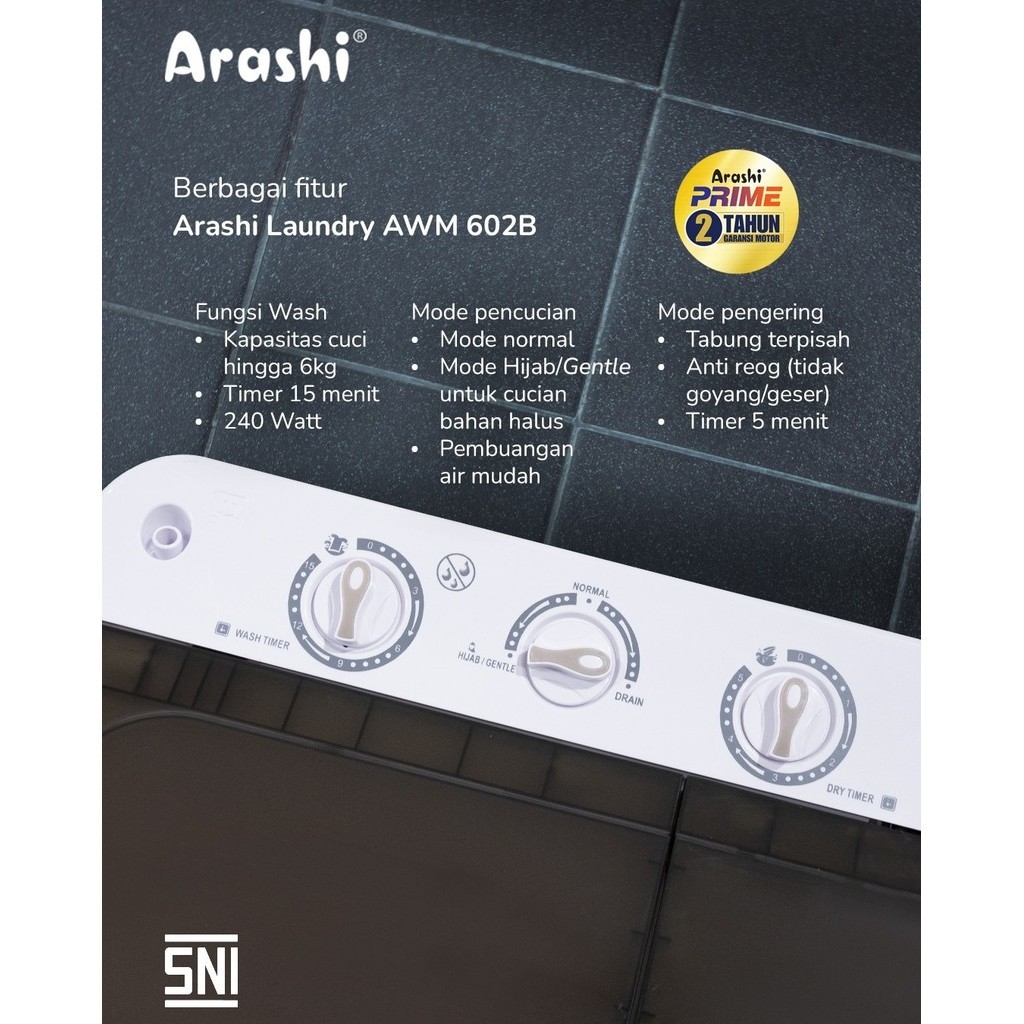 Arashi Mesin Cuci Mini 2 Tabung 6 Kg AWM-602B Laundry AWM602B [FREE PACKING KAYU KARGO]