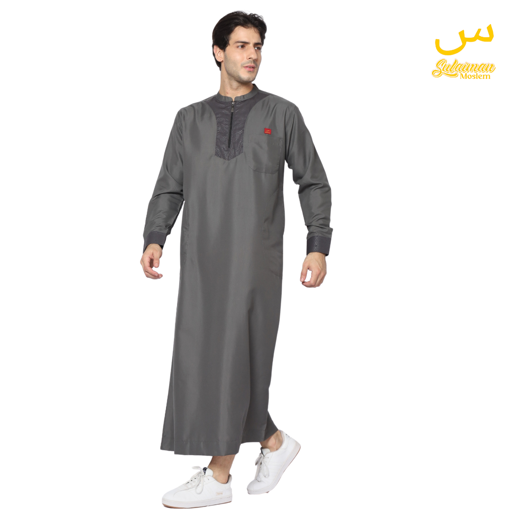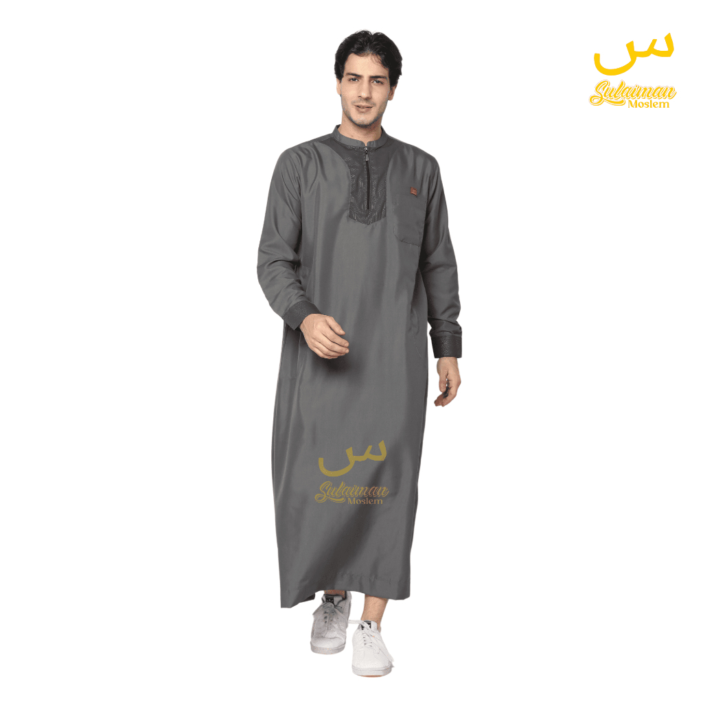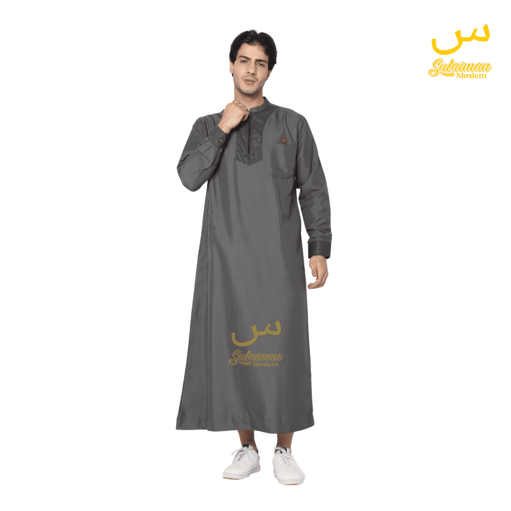 Sulaiman Moslem - Jubah Sholat Pria Lengan Panjang Poly Emboss Abu Tua - Dark Grey
