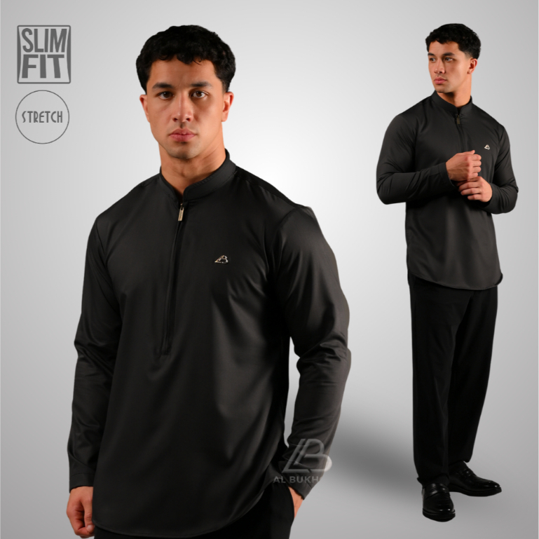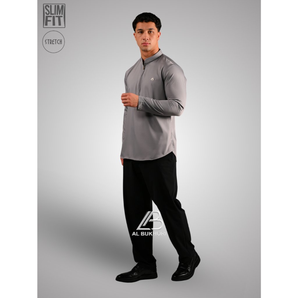 Al Bukhori - STRETCH Koko Pria Dewasa Slimfit Kemeja Koko Lengan Panjang - Koko Tsabit