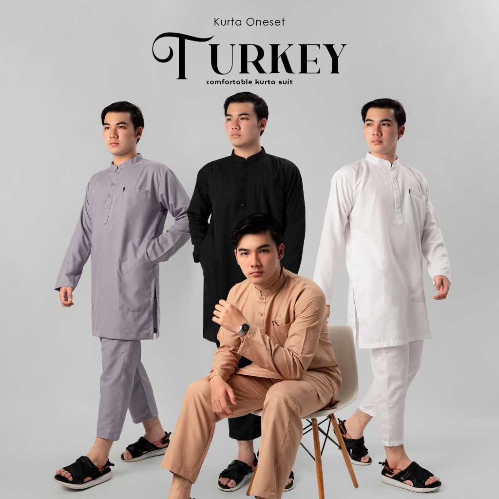 KATSAE - Oneset Turkey Pria Dewasa Setelan Baju celana Muslim | Set Kemeja Koko Kurta Size M L XL XXL