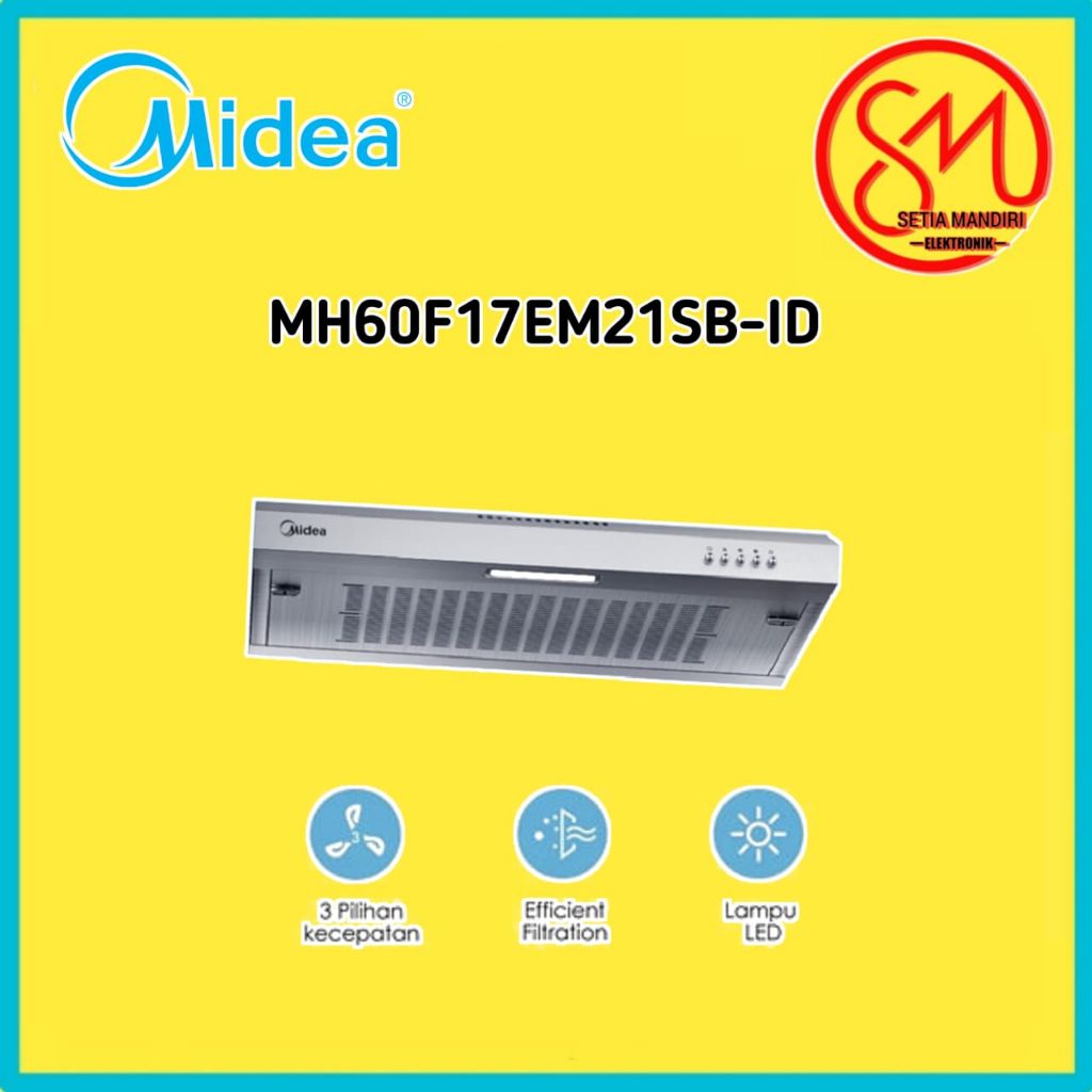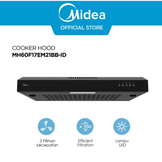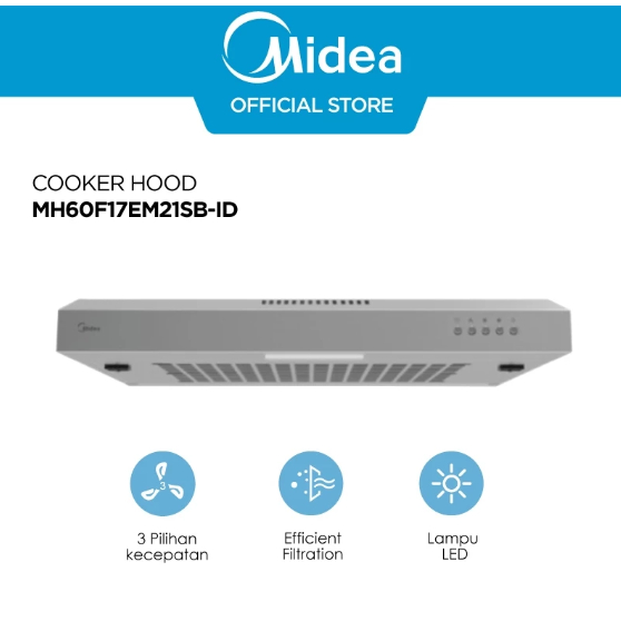 Midea Cooker Hood Slim 60cm Hitam&Stainless - MH60F17EM21BB-ID / MH60F17EM21SB-ID | Filter Aluminium