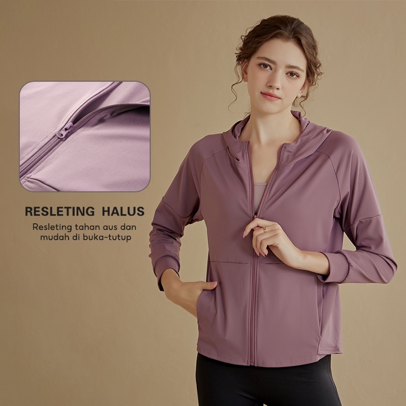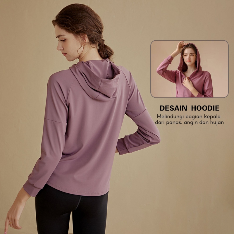 RATU Jaket Olahraga Wanita Lengan Panjang Baju Gym Hoodie Olahraga Anti UV Untuk Yoga Gym Fitnes