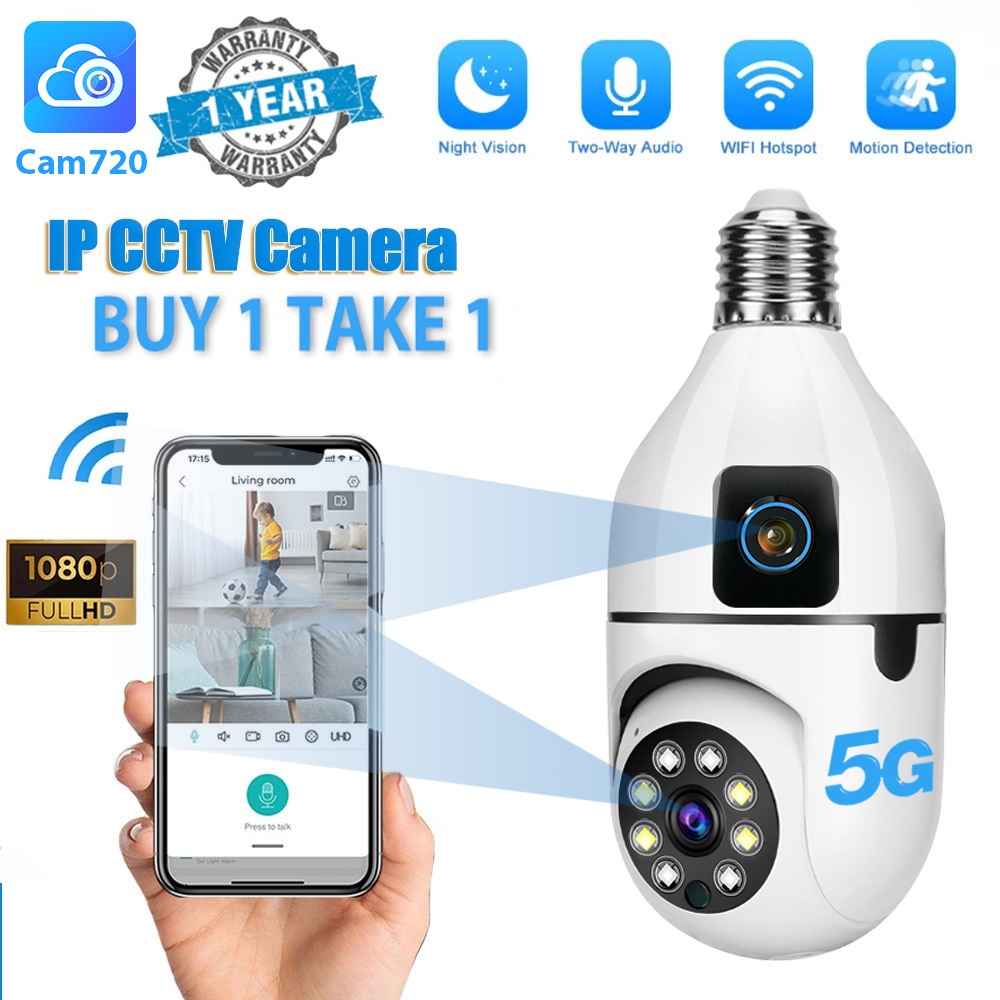 BUY 1 TAKE 1 CCTV Dual Lens CAM720 Full HD Dual Lens Dual Screens Kamera CCTV WIFI Jarak Jauh Lewat HP Wireless IP Camer