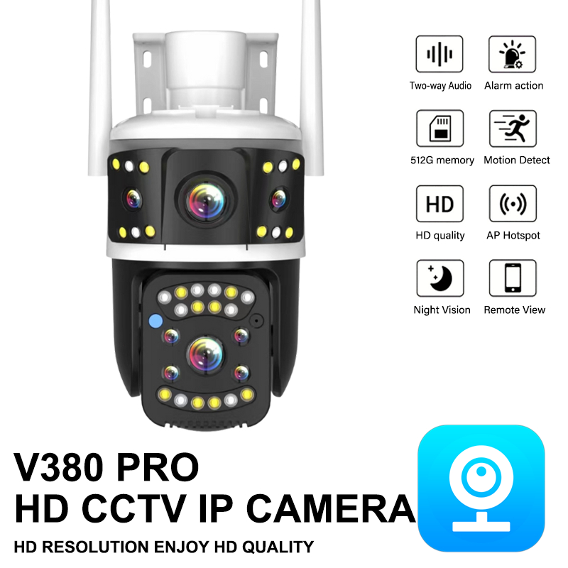V380 Pro CCTV IP Kamera Outdoor WIFI/4G Dual-Lens AI Human Detection 360° Rotation Night Vision