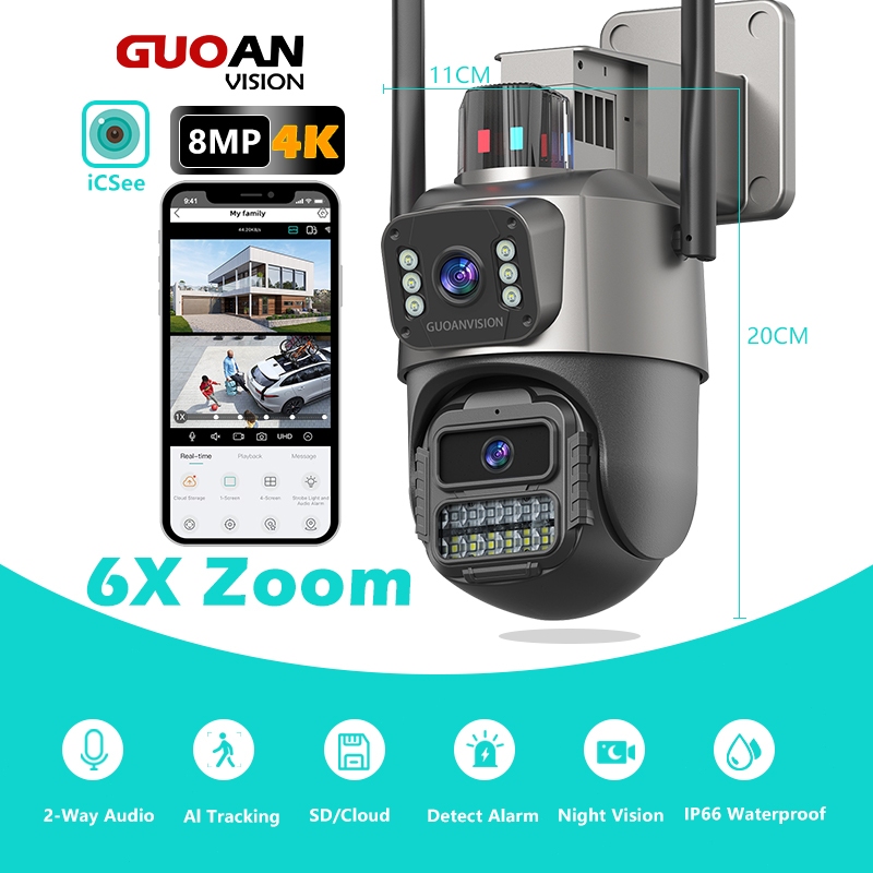 GUOANVISION 8MP IP Kamera Outdoor CCTV Waterproof 360 Support ICSEE 4X ZOOM