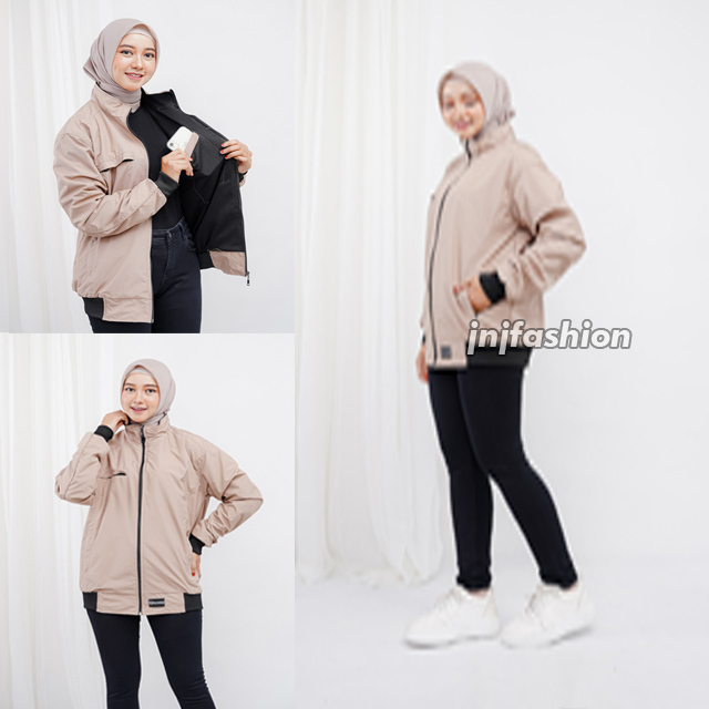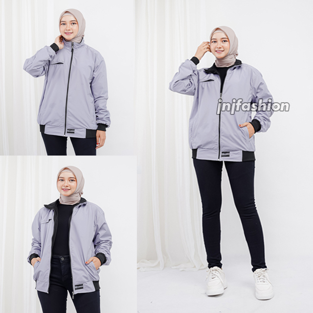 jnjfashion.id Jacket Motor Wanita Basic Prachute Casual Polos Tebal Waterproof Hight Quality