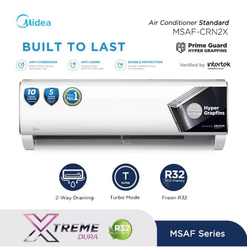AC Midea setengah pk 0,5 pk dengan perlindungan fin Hyper Grapfins