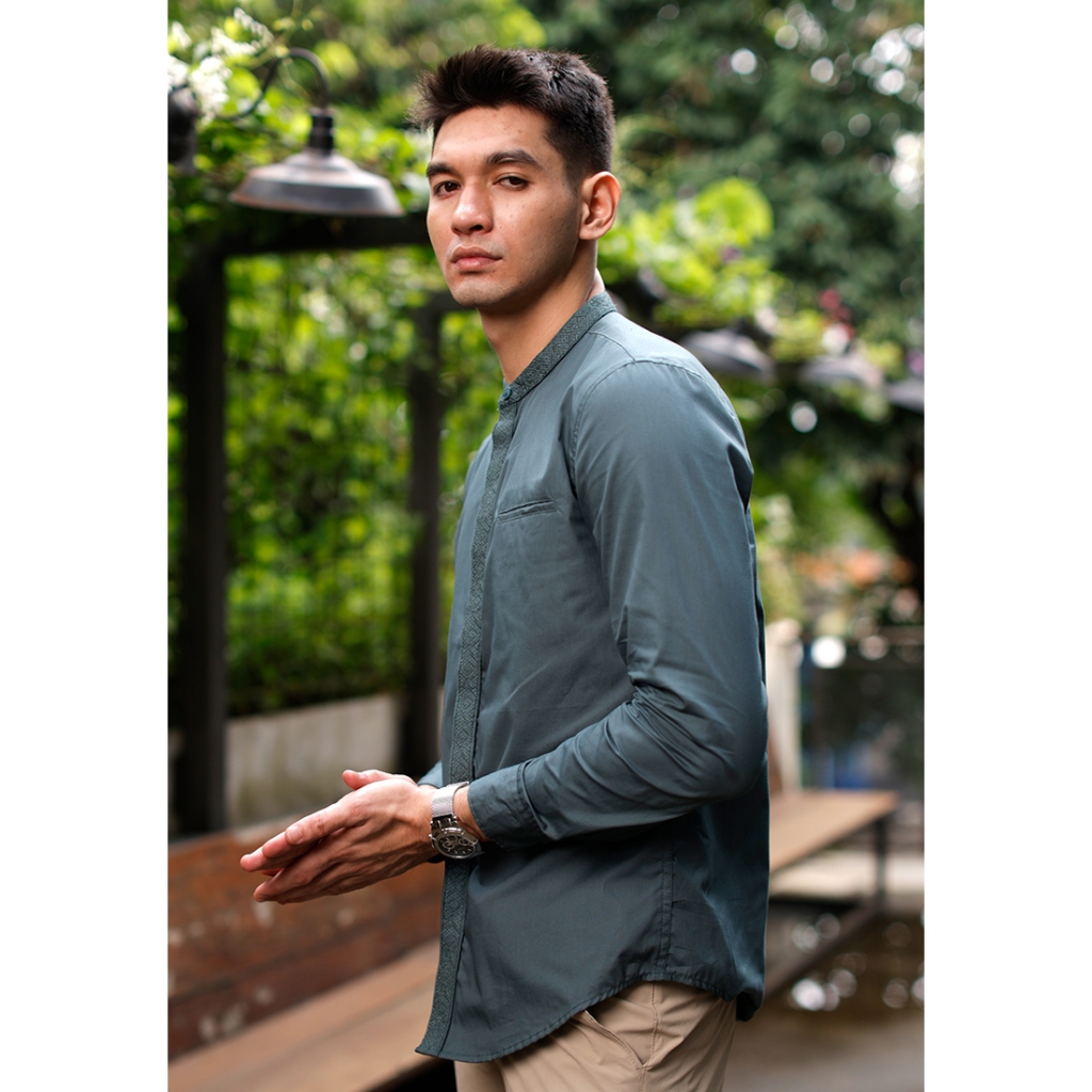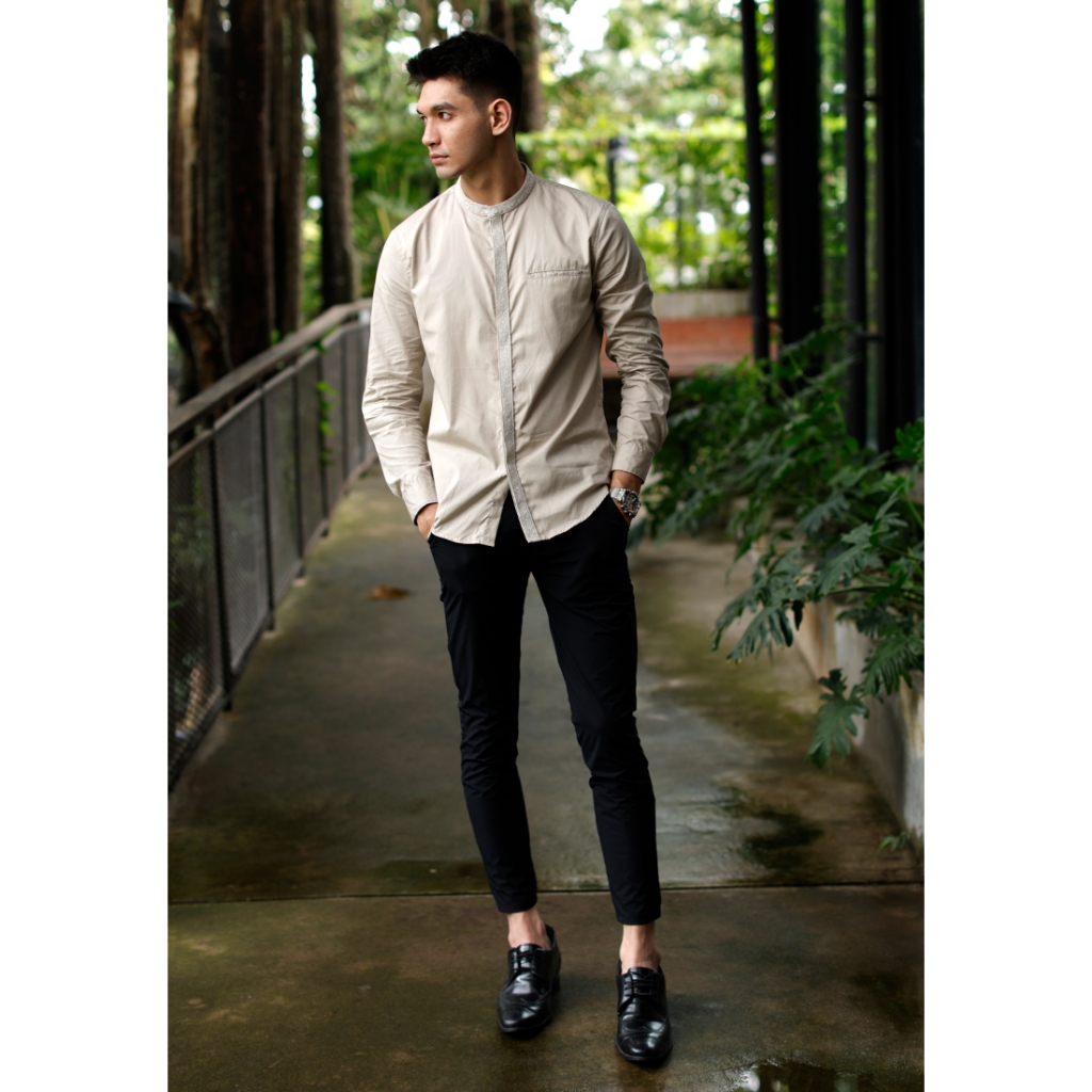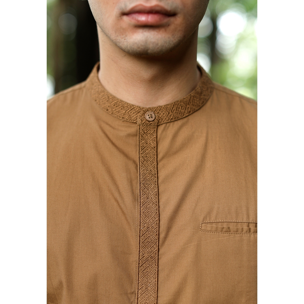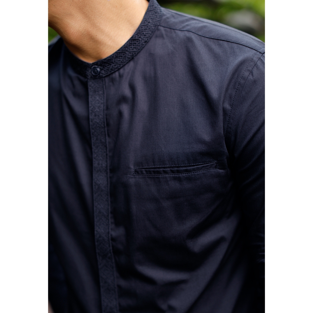 OXCON Kemeja Tangan Panjang koko bordir embrodiery collarless shirt