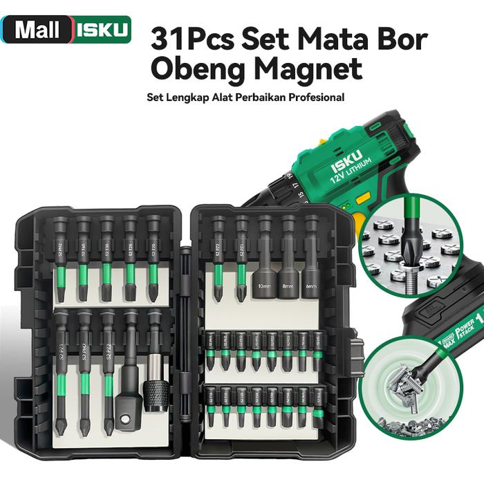 [Star]Isku 31Pcs Set Mata Bor & Obeng Magnet - Alat Perbaikan Professional Lengkap untuk Tukang Teknisi dan DIY | Suku C
