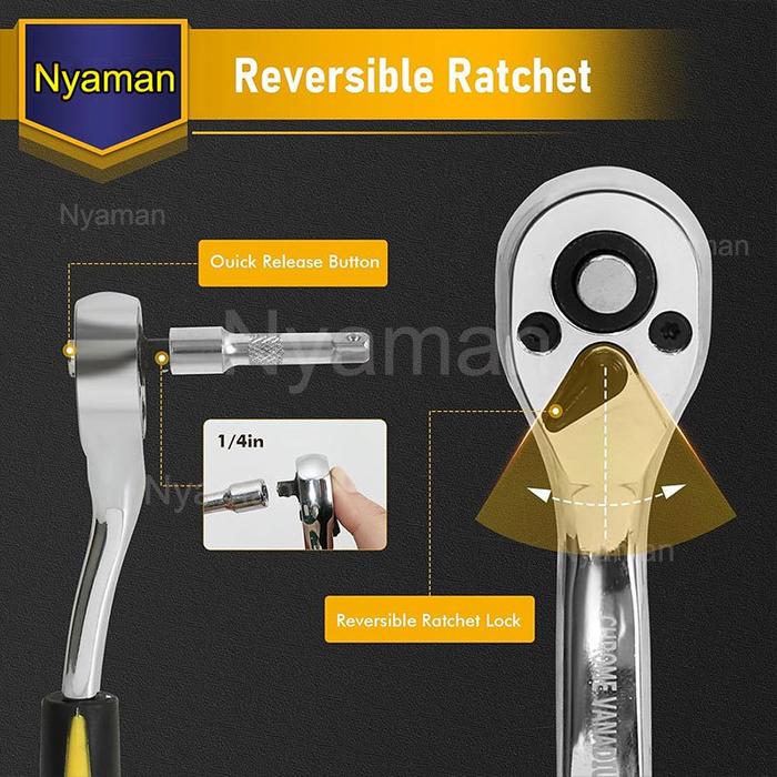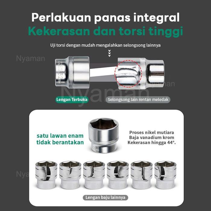 [Star]Set Kunci Sok Kunci Shock 46 pcs Mobil Motor Lengkap Socket Tool Kit set Pas Ring Motor Mobil - Hitam