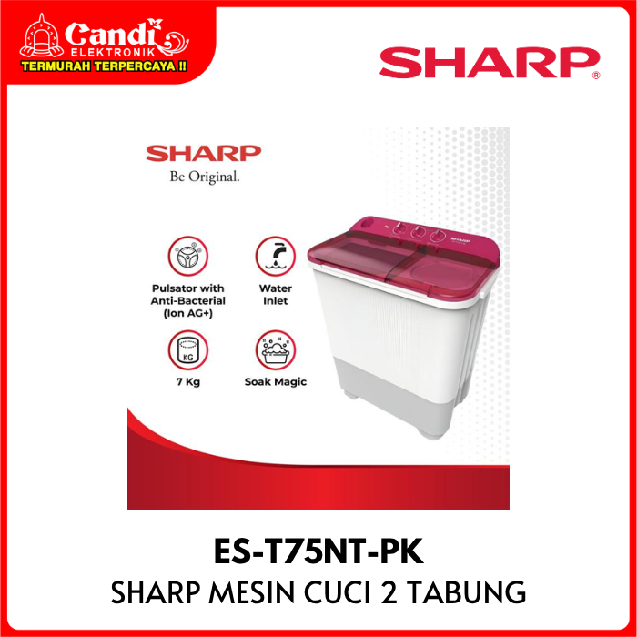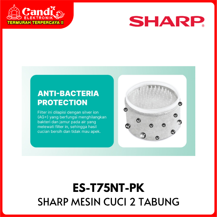 SHARP Mesin Cuci 2 Tabung 7 Kg Ag+ Pulsator Soak Magic Puremagic ES-T75NT-PK