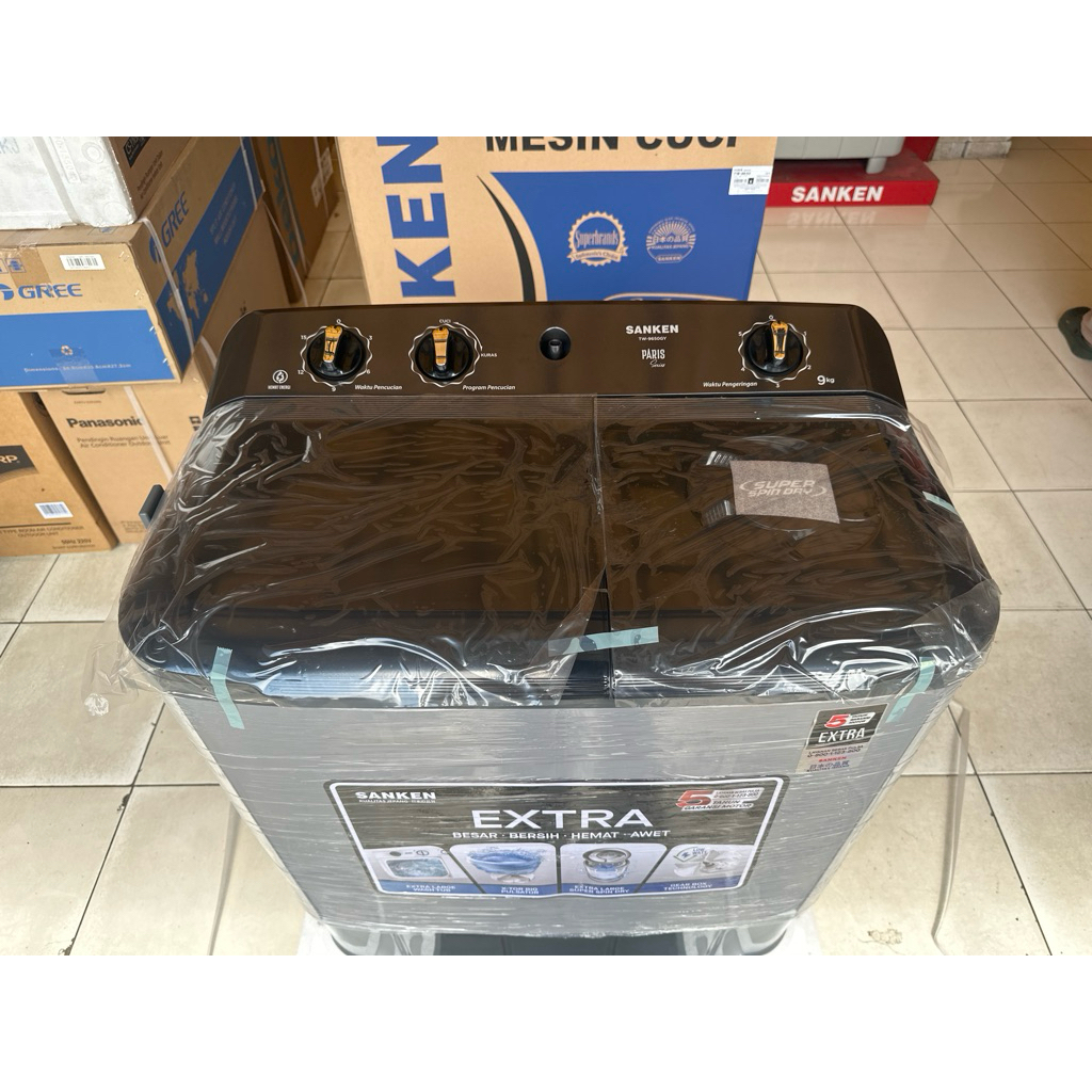 Sanken TW-9650 Gy Mesin Cuci 2 Tabung Twin Tub 9 Kg Resmi Low Watt