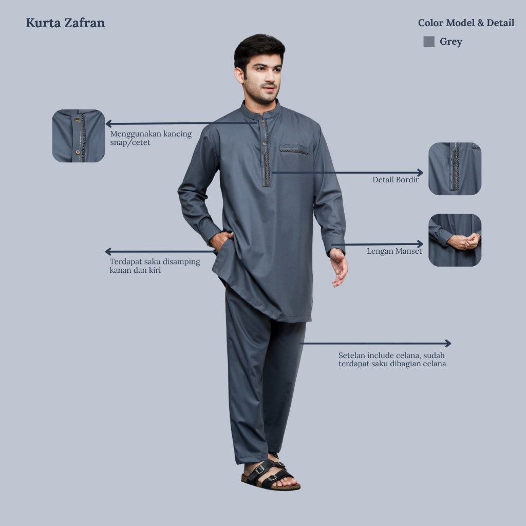 Zeefora Setelan Pakistan Zafran Baju Muslim Set Celana Premium Pria Dewasa Lengan Panjang