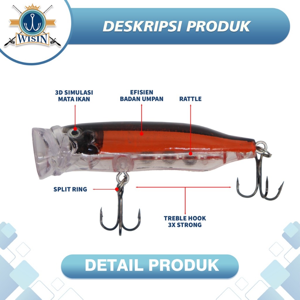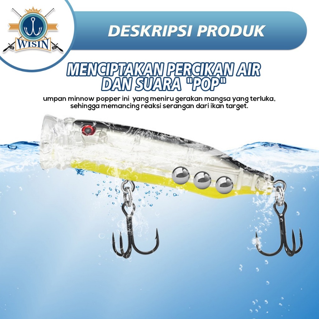 WISIN Lure Popper Transparan 7cm/9g Bebas Tenggelam Percikan Besar & Bola Suara