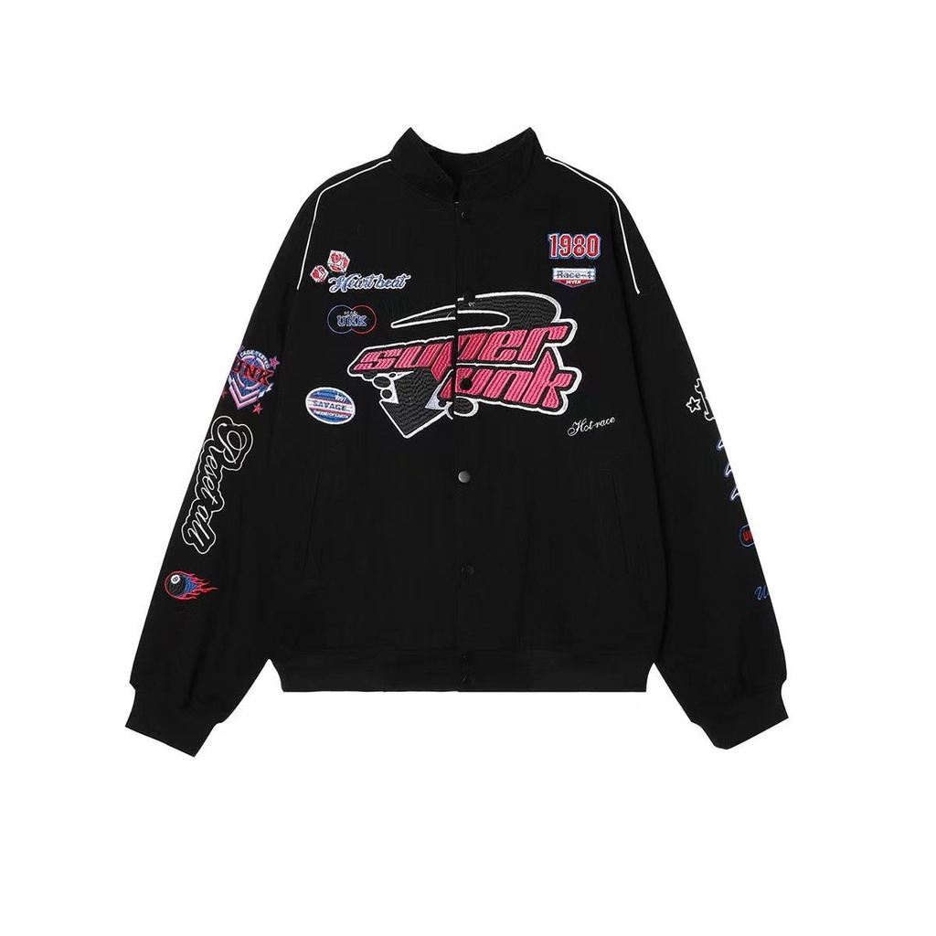 25OCLOCK - Balap Amerika Seragam Bisbol Seragam Wanita Musim Semi Dan Musim Gugur Baru Retro Longgar Cetak All-Match Jak