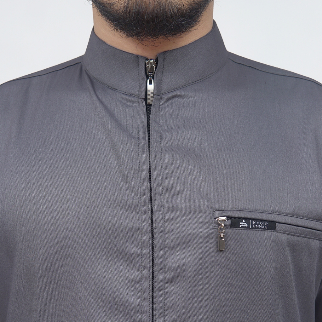 KHOIRUMMAH - Jubah Khalifah - Gamis Pria Dewasa Lengan Panjang Half Zipper - Dark Grey