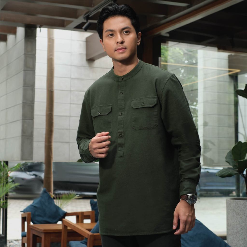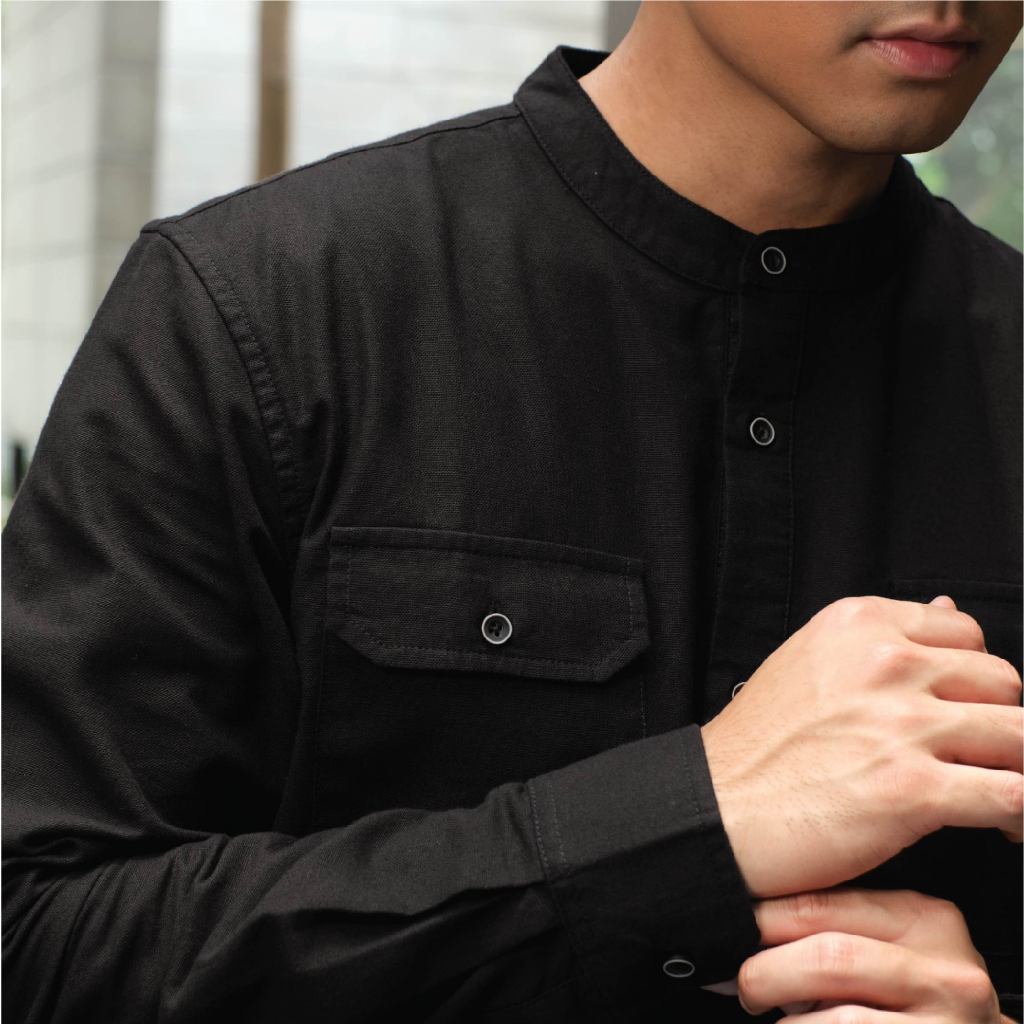 CUTOFF Yazeer Collarless Shirt Kemeja Koko Cotton Rami Formal Basic Polos Pria Lengan Panjang