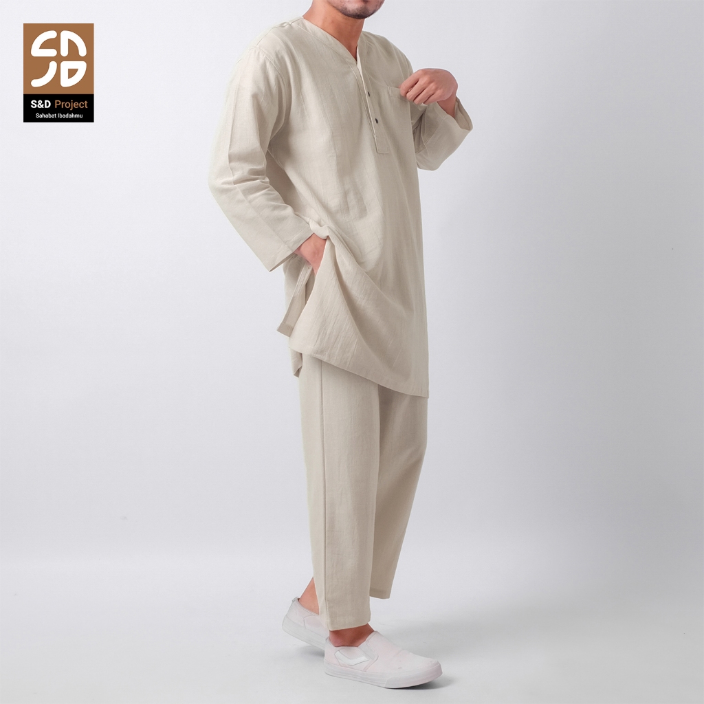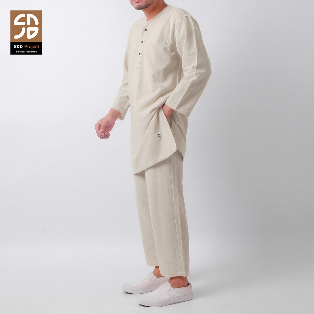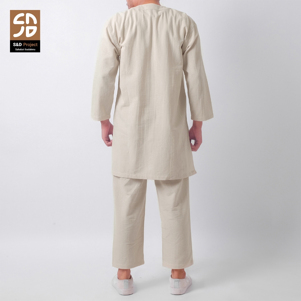 S&D PROJECT Setelan Baju Muslim Layyan Linen Ivory Kurta dan Celana M-XL Pria Dewasa Lengan Panjang