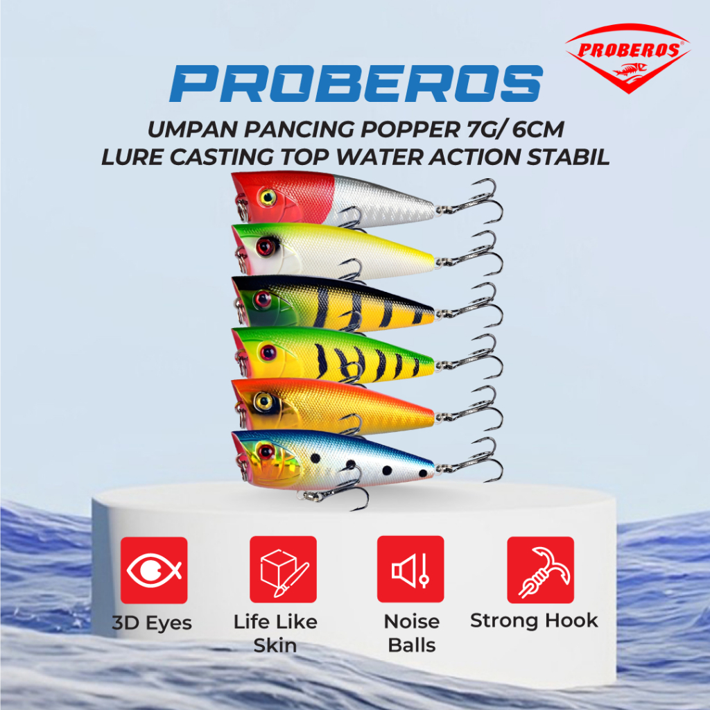 PROBEROS Umpan pancing POPPER 7g/6cm lure casting top water action stabil LP153