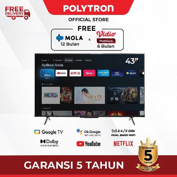 LED TV POLYTRON 4K UHD Smart Google TV 43 Inch PLD 43UG5959