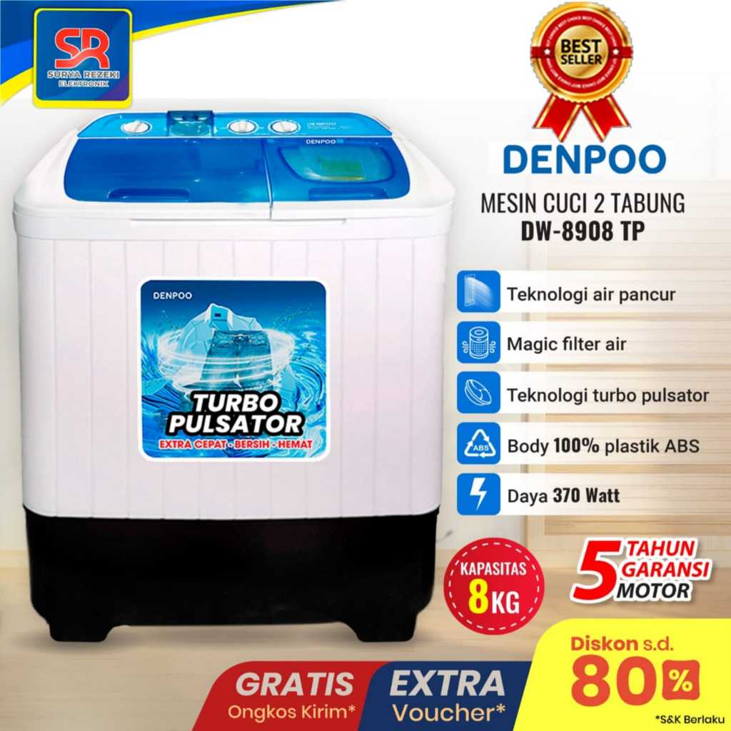 KHUSUS FREE ONGKIR KOTA SEMARANG/Mesin Cuci Denpoo 2Tabung Hemat Listrik AIR Pancur- ( 8KG)