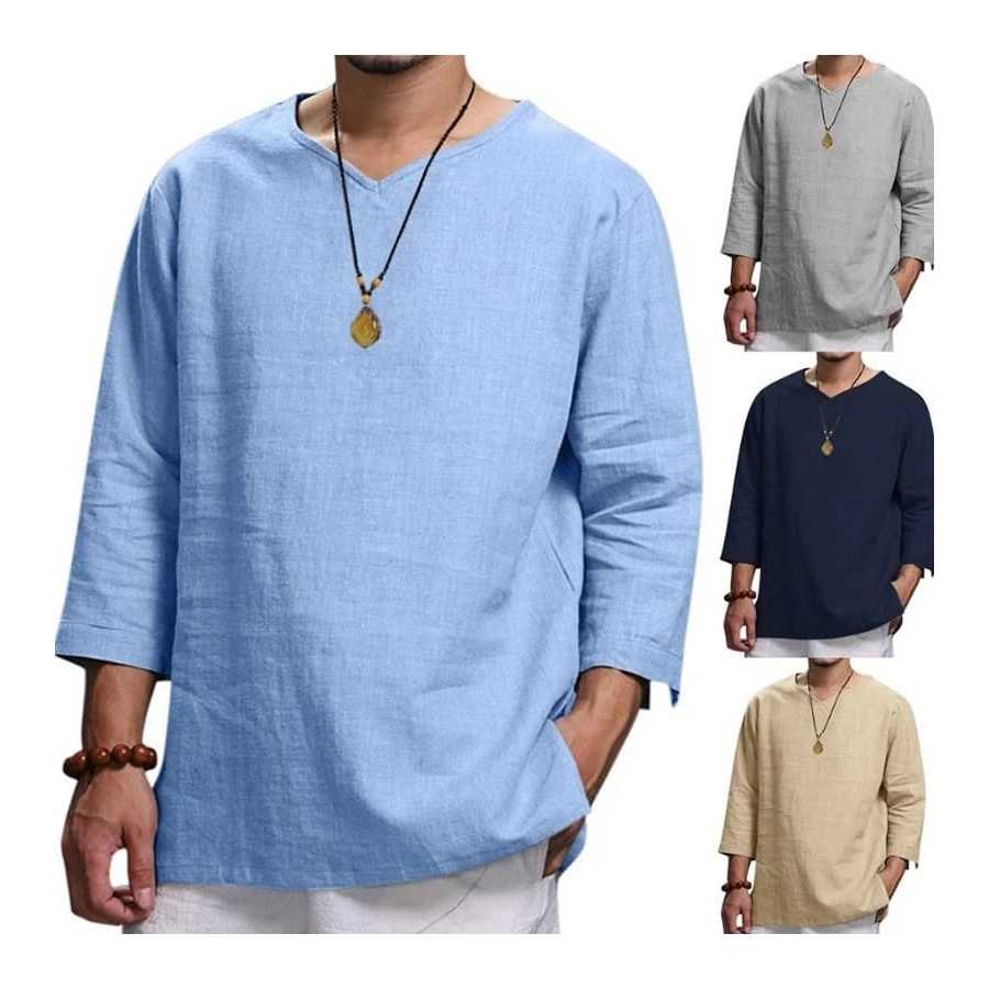 BIN’S Baju Koko Pria Amir - Atasan Kemeja Kurta Polos Tangan 3/4