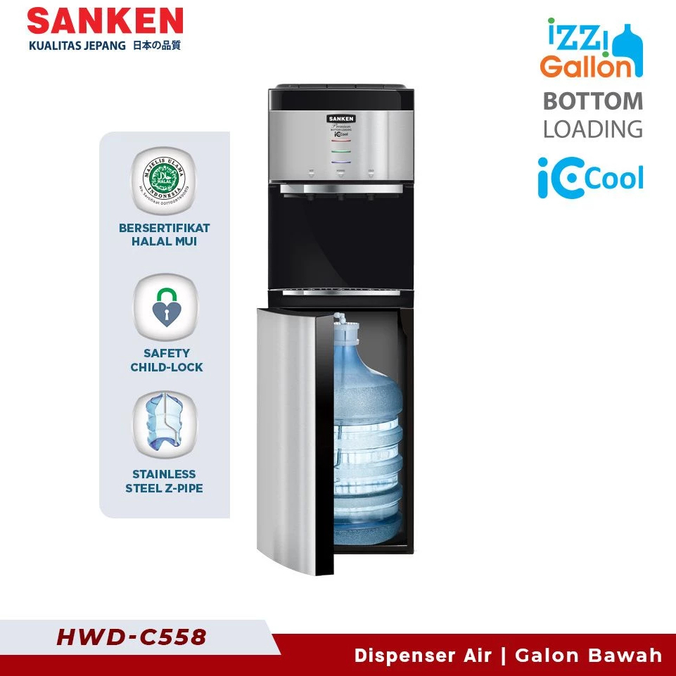 Sanken Dispenser Galon Bawah Hot and Cool 3 Kran - HWDC558IC / HWDC555IC - FREE ONGKIR Jabodetabek