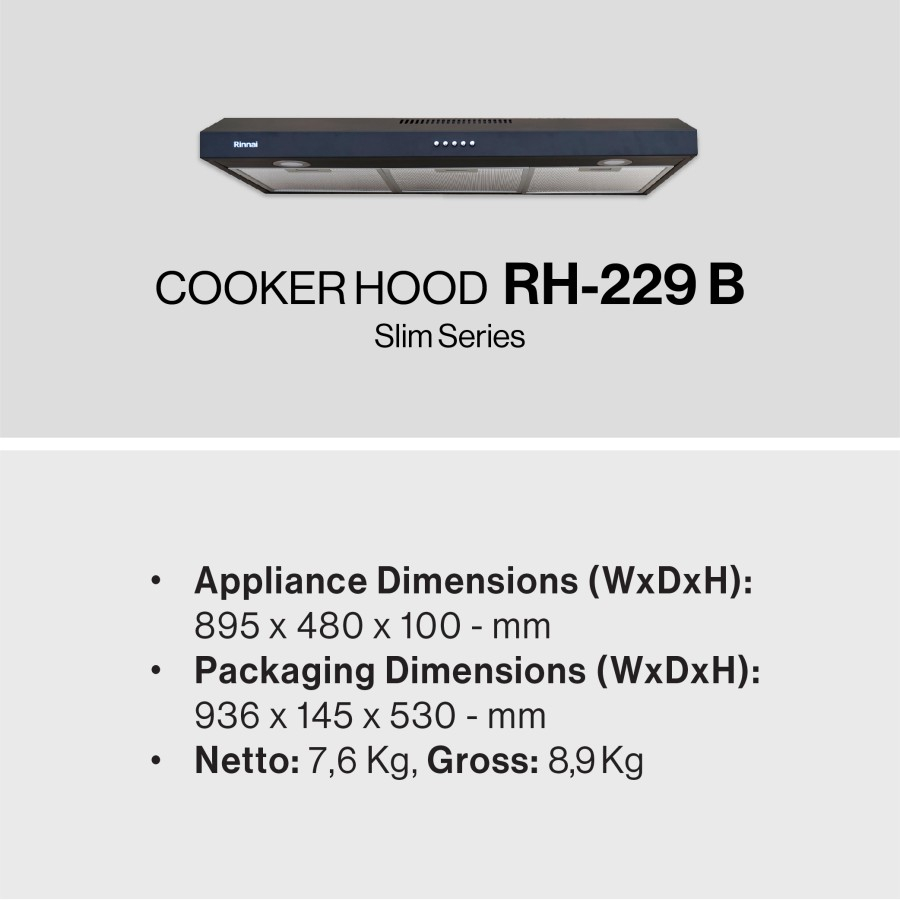 Rinnai RH-229B Cooker Hood RH 229 B penghisap asap RH229B Rinai 90 cm