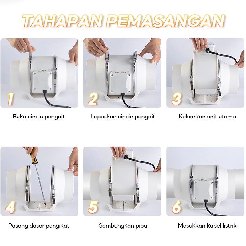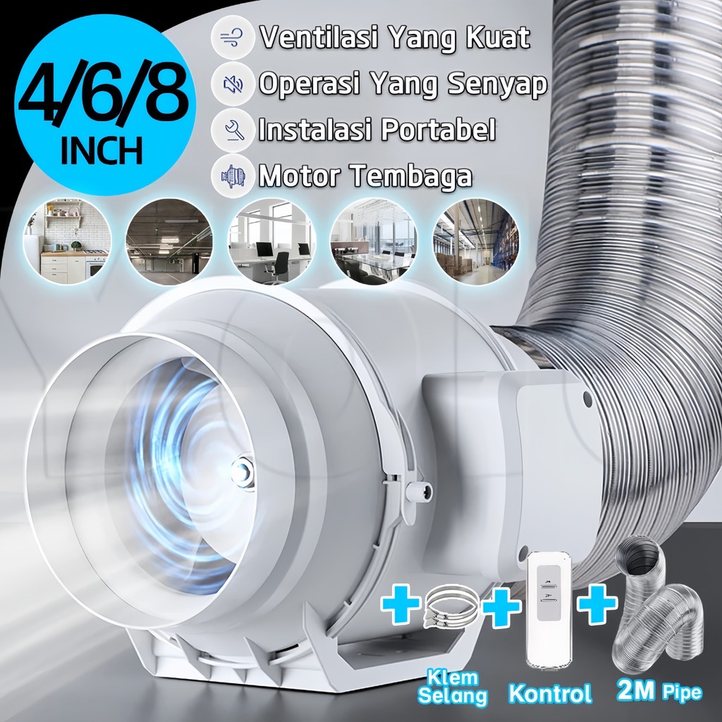 4" 6" 8" 220V Blower Dapur Penghisap Hisap Untuk Kamar Mandi Dapur Kipas Angin B Diam Ekstraktor Kipas Saluran Sebar