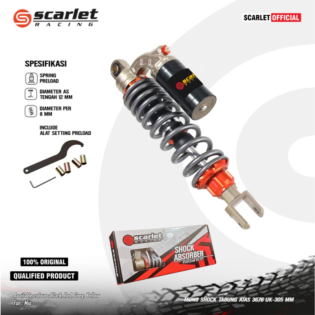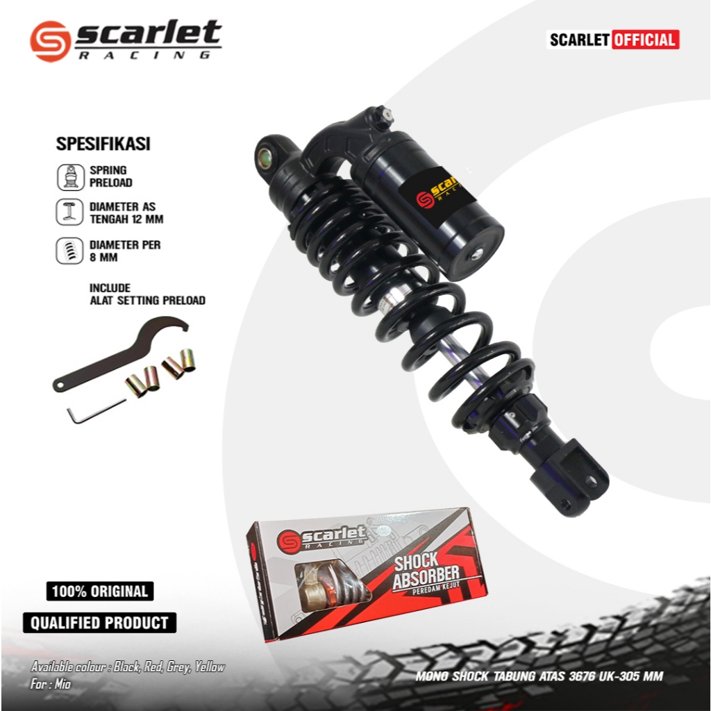 Scarlet Racing- Shock Tabung Atas Shockbreaker Skok Suspensi 3676 Mio 305 mm