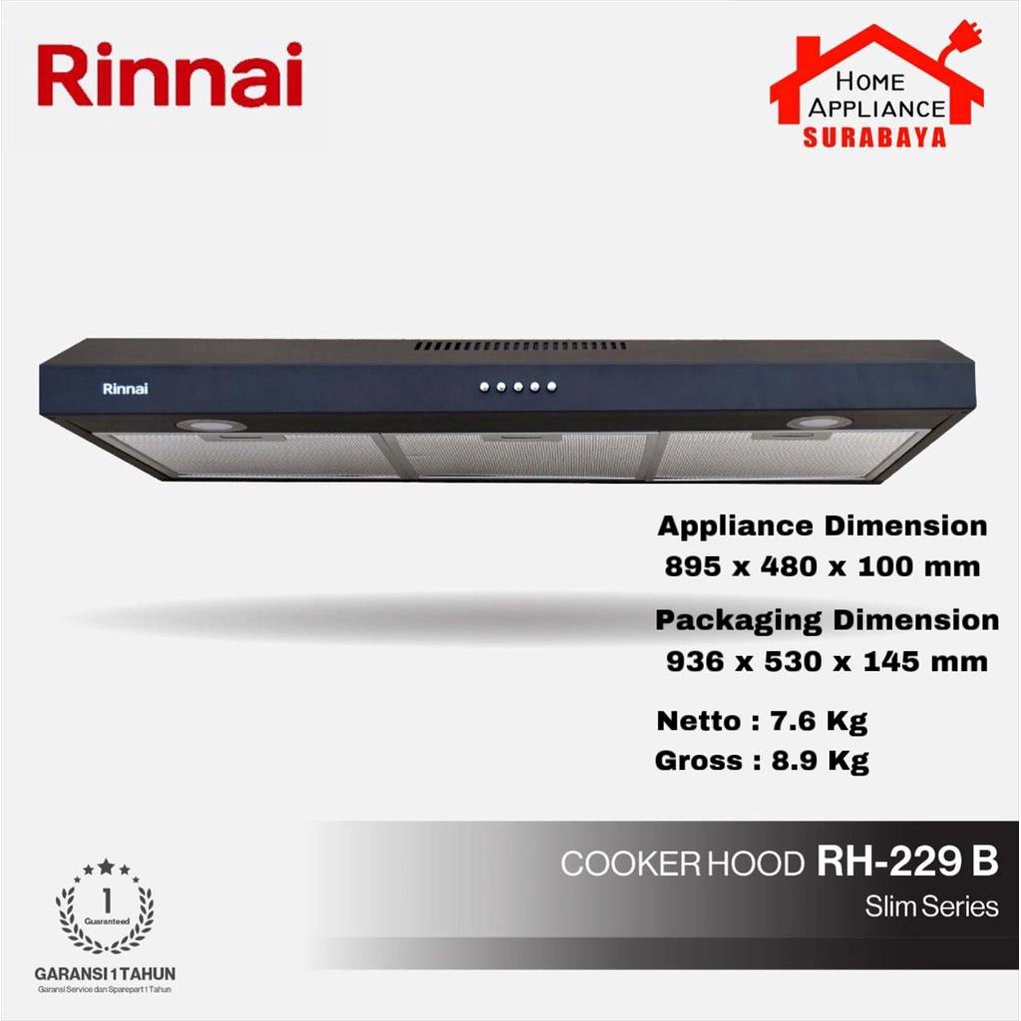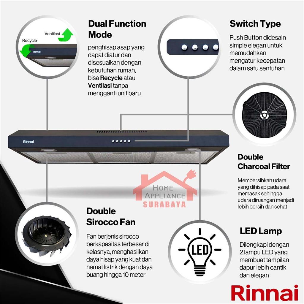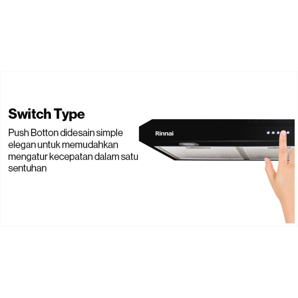 RINNAI Cooker Hood Slim Series Penghisap Asap Dapur 90CM RH-229B / RH 229 B HITAM