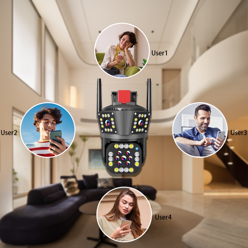 Kamera CCTV V380pro ICSEE Wireless WiFi Alarm Deteksi IP66 Outdoor Waterproof Three-LensAI 360°PTZ Kamera CCTV Camera