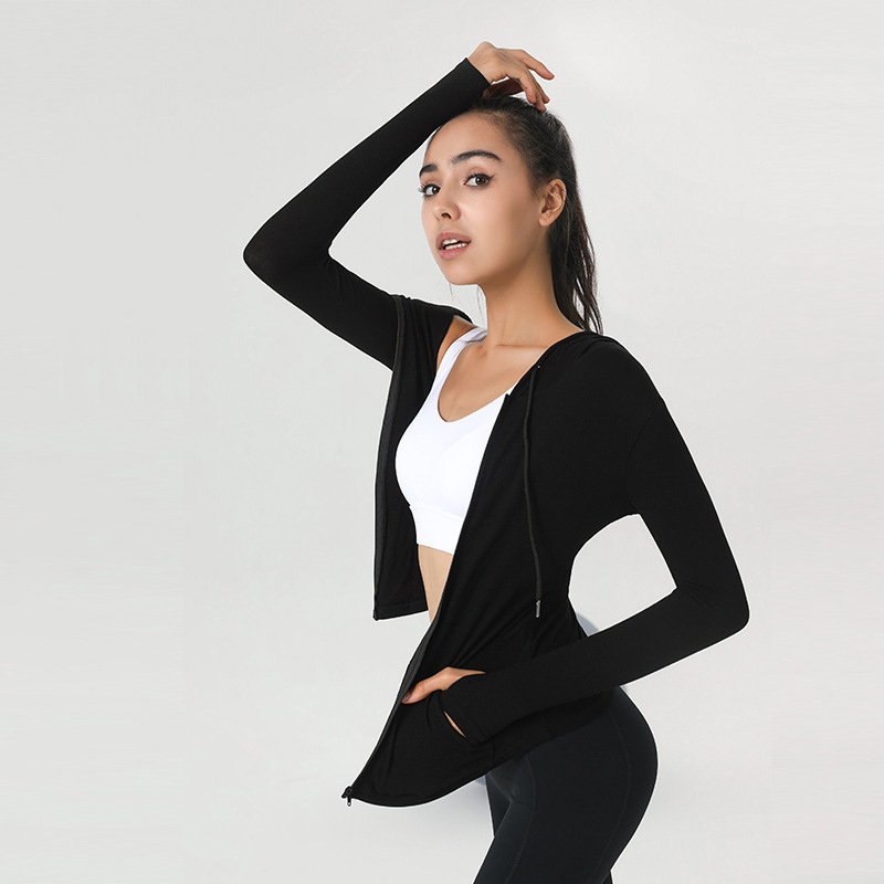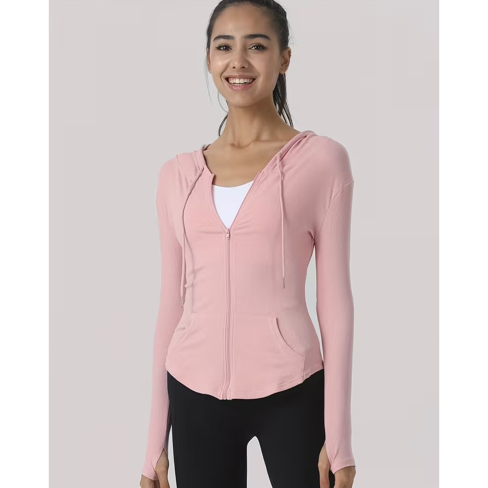 CANTIKLIB Kardigan Ritsleting Berkerudung Jaket Atasan Olahraga Pelangsing Pakaian Kebugaran