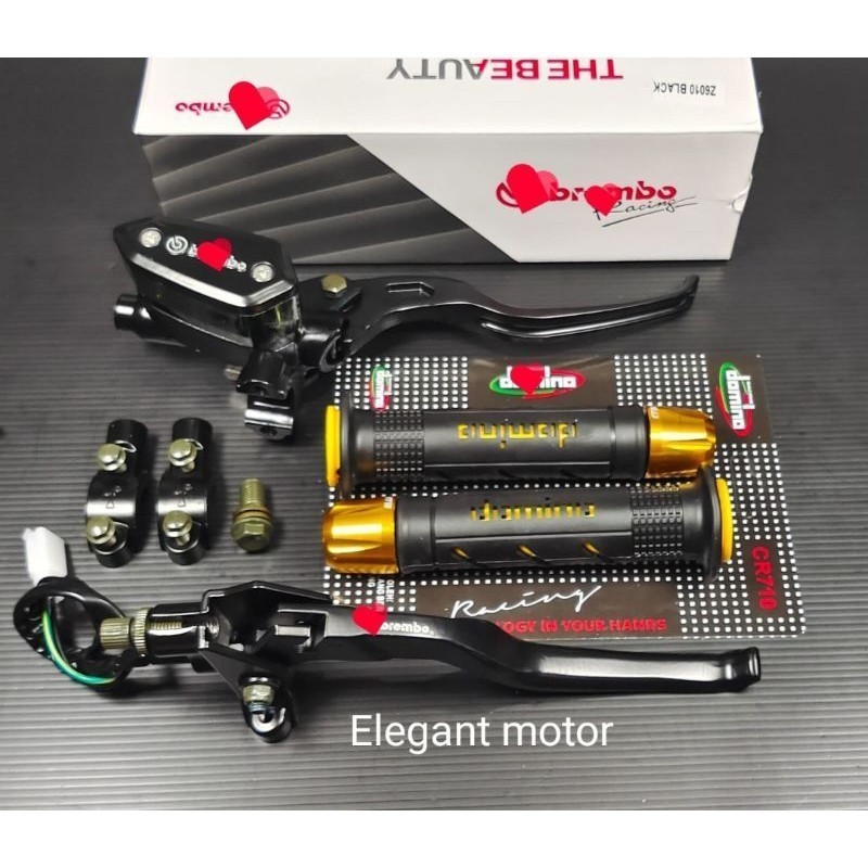 Paket master rem tabung tipe oval + Handgrip Dominoo + Jalu stang cnc / Universal -