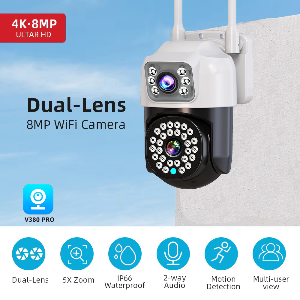 V380 Pro 8MP Wireless CCTV Camera 1080p HD Wifi Night Vision 360° Auto Tracking jarak jauh lewat hp