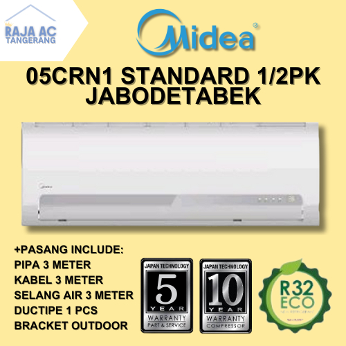 AC Midea 1/2 PK 05CRN STANDARD FREE PASANG + AKSESORIS Raja AC Tangerang