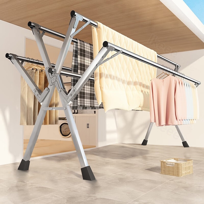 Jemuran Lipat Jemuran Baju Stainless Steel Anti Karat Multifungsi 5 Tiang Jemuran Outdoor Indoor Kapasitas Tinggi 240cm