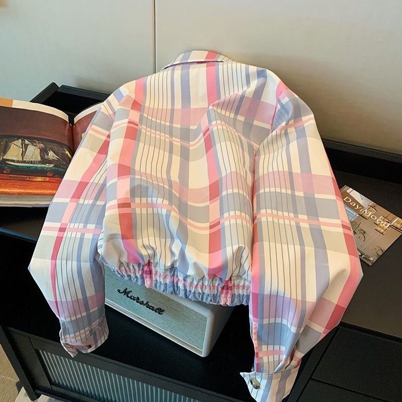American plaid embroidered Polo collar jacket jacket for women's new college baseball jacket