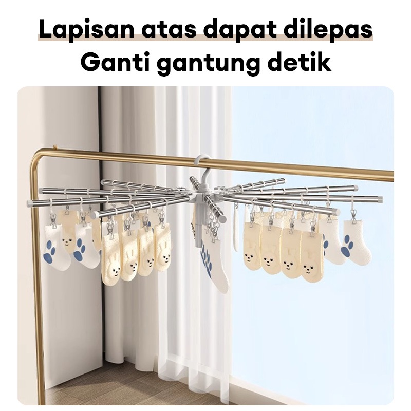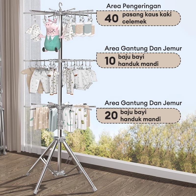 Jemuran Menara Bayi Besi Lipat Portable Stok Ready Kirim Cepat Gantung Handuk Kaus Kaki Stand Hanger Foldable