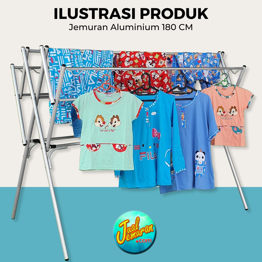 Jemuran Baju & Handuk Aluminium Jumbo 180 cm Anti Karat Rak Pengering Pakaian 9 Palang