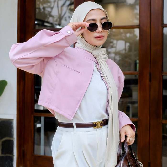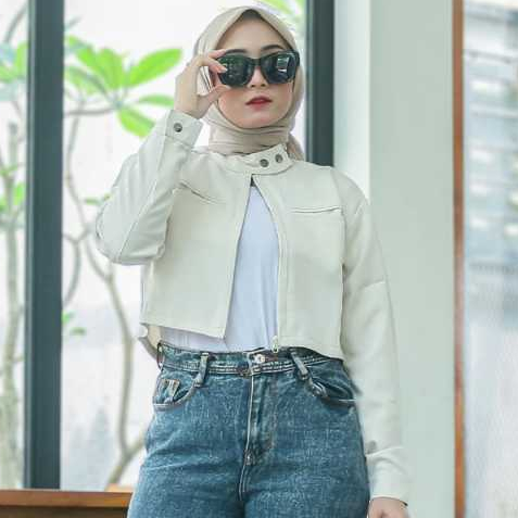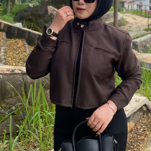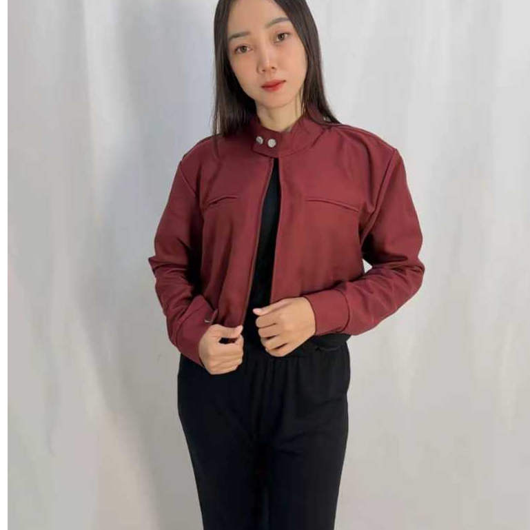[PROMO MURAH] Jaket Crop Wanita Zipper Lengan Panjang Atasan Crop Wanita Bahan Semi Woll Premium