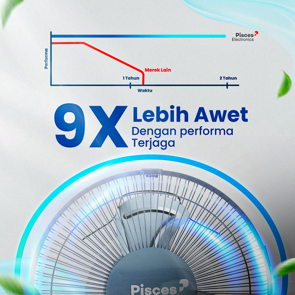 Pisces WDF101PRO Kipas Angin Meja & Dinding Baling Besi Garansi 5 Tahun Teknologi Bearing