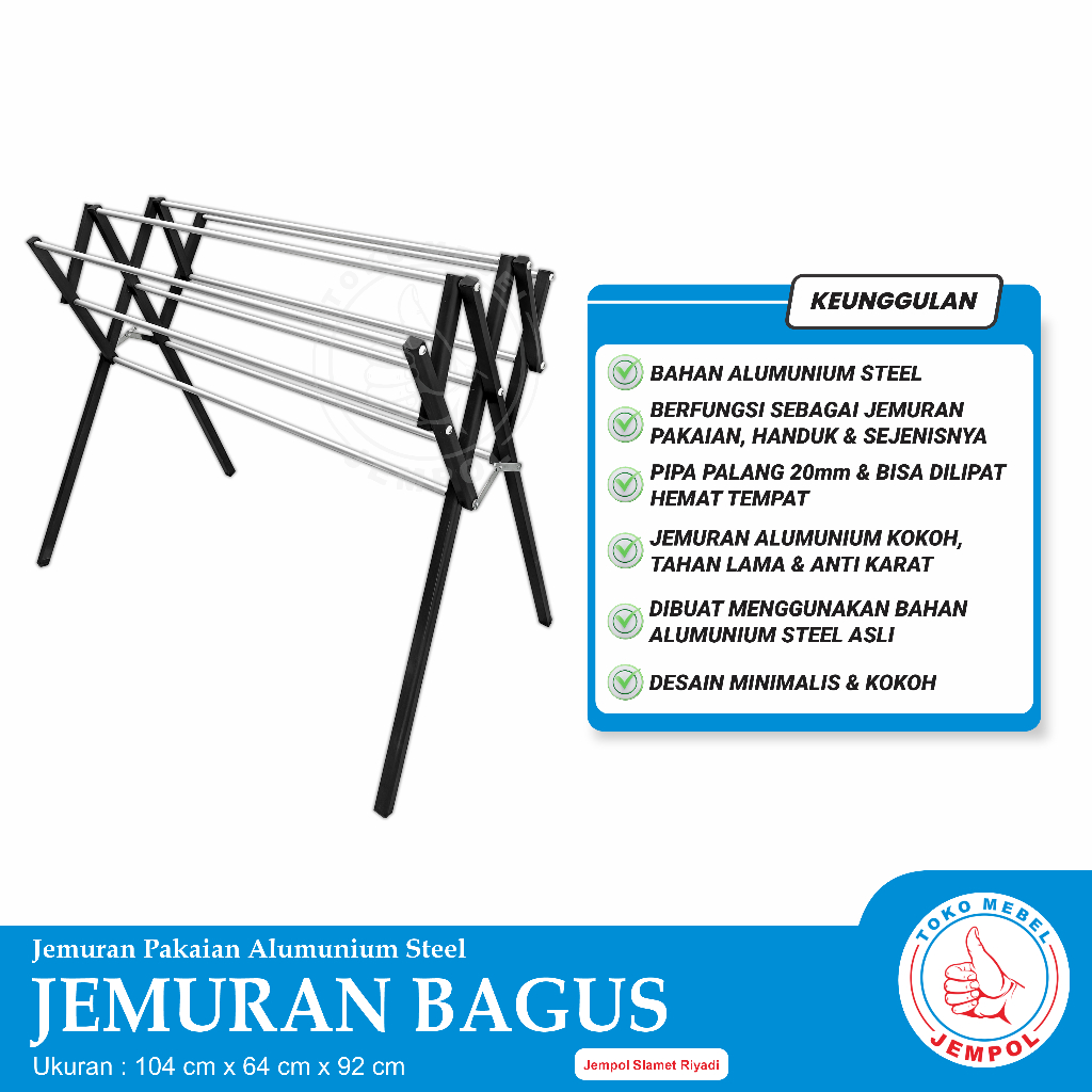Jemuran Handuk Bagus Ukuran 80cm & 100cm Alumunium Steel Jempol