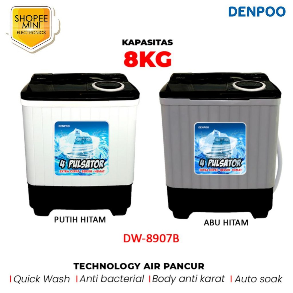 Mesin Cuci Denpo 2 Tabung 8kg Turbo Pulsator